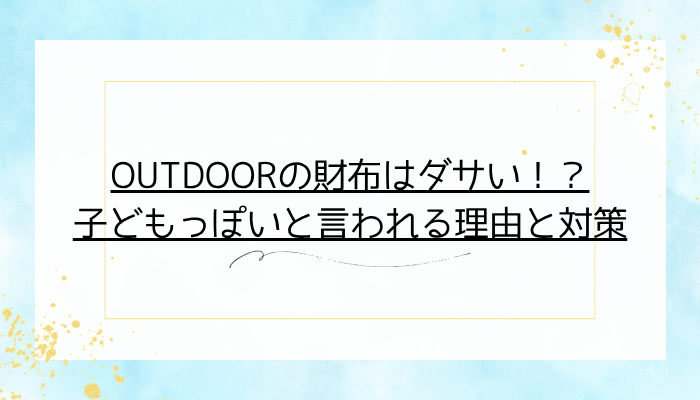 「OUTDOORの財布ってダサいの?」そんな疑問を持ったことはありませんか。手頃な価格と使いやすさで人気のある一方、「子どもっぽい」「安っぽく見える」といった声があるのも事実です。